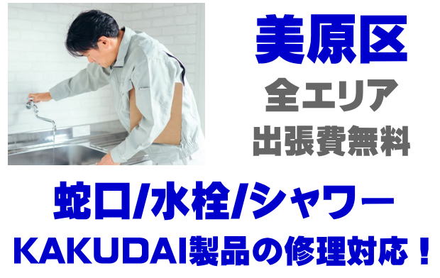 美原区で水栓メーカーKAKUDAIの修理業者をお探しなら当社までお気軽にお問い合わせください。蛇口の水漏れ、シャワーの故障などカクダイ製に関するトラブルなら何でもご相談ください。