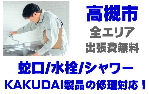 高槻市で水栓メーカーKAKUDAIの修理業者をお探しなら当社までお気軽にお問い合わせください。蛇口の水漏れ、シャワーの故障などカクダイ製に関するトラブルなら何でもご相談ください。