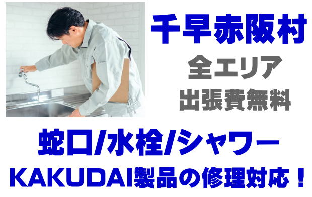 千早赤阪村で水栓メーカーKAKUDAIの修理業者をお探しなら当社までお気軽にお問い合わせください。蛇口の水漏れ、シャワーの故障などカクダイ製に関するトラブルなら何でもご相談ください。
