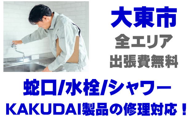 大東市で水栓メーカーKAKUDAIの修理業者をお探しなら当社までお気軽にお問い合わせください。蛇口の水漏れ、シャワーの故障などカクダイ製に関するトラブルなら何でもご相談ください。