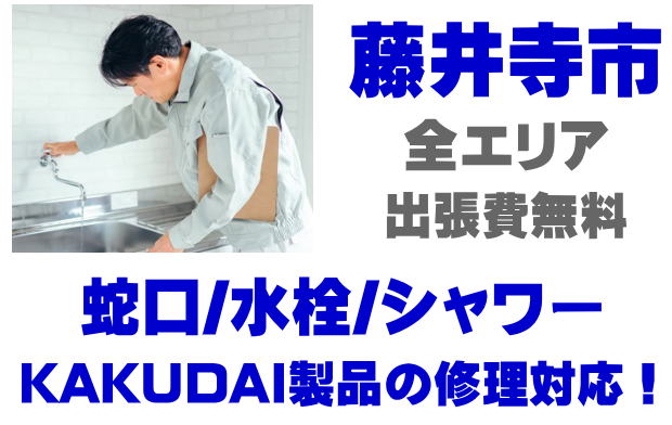 藤井寺市で水栓メーカーKAKUDAIの修理業者をお探しなら当社までお気軽にお問い合わせください。蛇口の水漏れ、シャワーの故障などカクダイ製に関するトラブルなら何でもご相談ください。