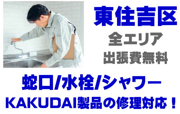 東住吉区で水栓メーカーKAKUDAIの修理業者をお探しなら当社までお気軽にお問い合わせください。蛇口の水漏れ、シャワーの故障などカクダイ製に関するトラブルなら何でもご相談ください。