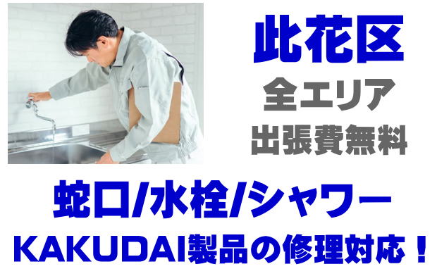 此花区で水栓メーカーKAKUDAIの修理業者をお探しなら当社までお気軽にお問い合わせください。蛇口の水漏れ、シャワーの故障などカクダイ製に関するトラブルなら何でもご相談ください。