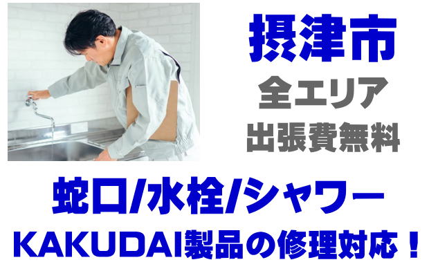 摂津市で水栓メーカーKAKUDAIの修理業者をお探しなら当社までお気軽にお問い合わせください。蛇口の水漏れ、シャワーの故障などカクダイ製に関するトラブルなら何でもご相談ください。