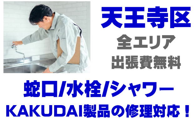 天王寺区で水栓メーカーKAKUDAIの修理業者をお探しなら当社までお気軽にお問い合わせください。蛇口の水漏れ、シャワーの故障などカクダイ製に関するトラブルなら何でもご相談ください。